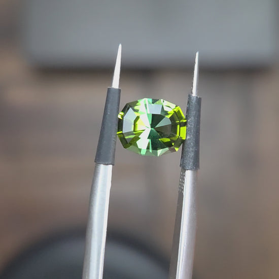 This beautiful tourmaline features two different shades of green. The clarity is near flawless. Overall a very lovely gemstone.