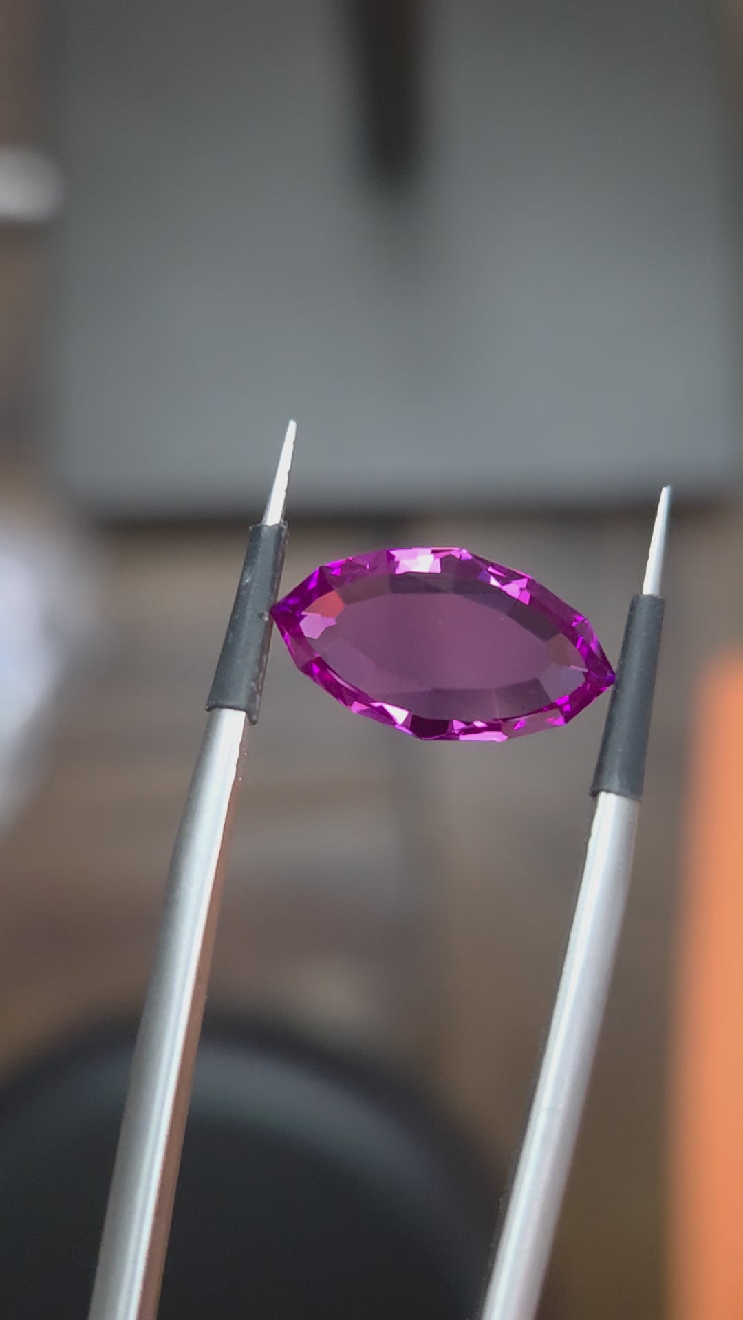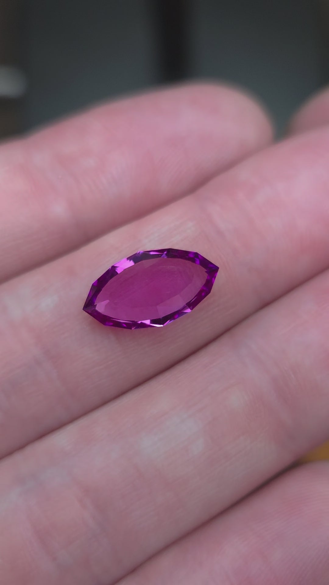 An extremely uncommon vibrant pink portrait cut lab grown corundum.